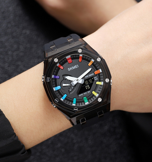 Втілення стилю, яскравого дизайну та технологічності — новий годинник від SKMEI. Хронометр обладнаний точним секундоміром, незамінною функцією будильника та відображення поточної дати, що дасть змогу завжди бути в гущі подій і не проґавити важливих справ.