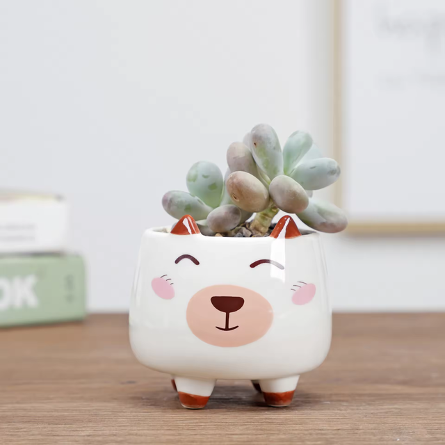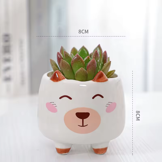 Невеликий декоративний горщик із зображенням милого ведмедика стане чудовим доповненням інтер'єру. Ідеальний для вирощування сукулентів та інших маленьких рослин. Виготовлений із якісної кераміки з отворами для дренажу.
